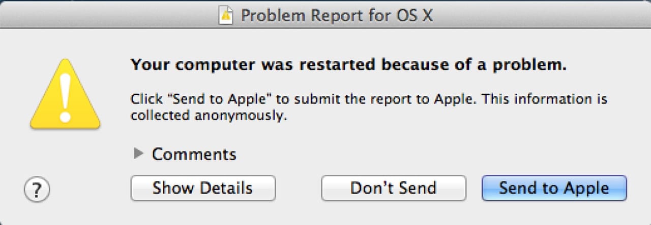 Once your system reboots after the kernel panic error, a crash report pops-up stating that the system restarted because of a problem. Click Show Details to know what triggered the panic.