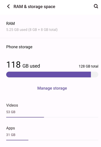 If your phone’s storage space is overwhelmed, the gallery app may not respond properly or stop working in between. Hence, the core strategy here is to manage your Android phone’s storage by checking and clearing unwanted files to free up space. First, go to settings> storage on your device, then check how much free storage is left. Atleast 10 to 15 percent of your phone’s total storage should be left free for smooth functioning of the device. If your device has less than the desired free storage, act fast.