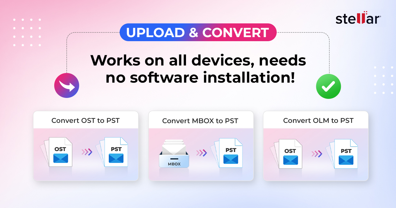 The FREE Stellar Online Conversion tool allows users to convert OST, MBOX, and OLM mailbox files into accessible formats through a secure web interface. In many enterprise environments, software usage is restricted until IT-approved — a process that can delay critical business operations. With Stellar's online service, users bypass lengthy software approval cycles and gain immediate, secure access to mailbox data directly from the browser — on any device, without installation.