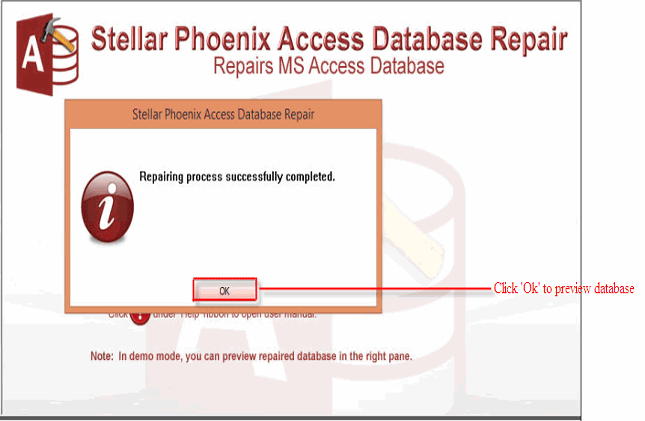 step 4:- Repairing process is completed successfully. Click on ‘Ok’ to see the preview of your database objects.