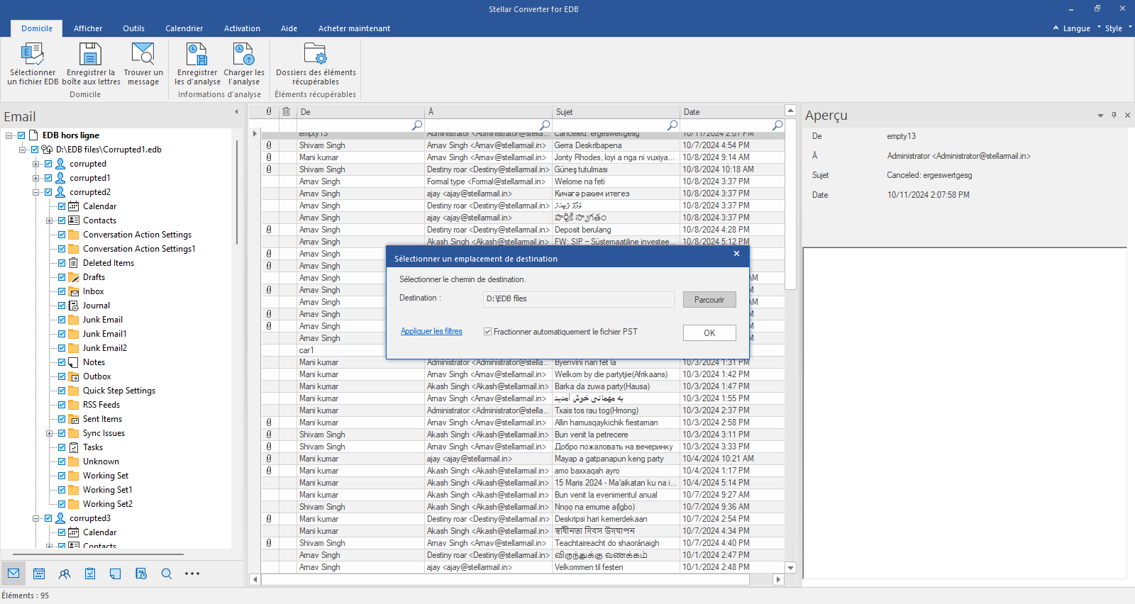 Après l'analyse, cliquez sur une boîte aux lettres ou un élément pour le prévisualiser.