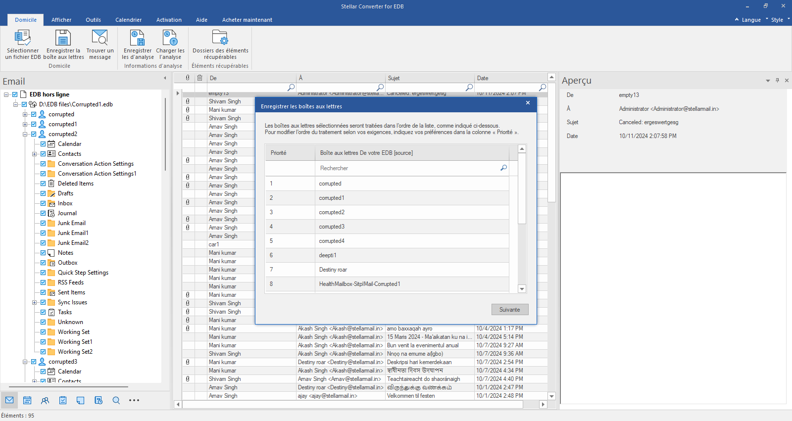 Dans la fenêtre « Enregistrer les boîtes aux lettres », vous pouvez modifier la priorité d'exportation des boîtes aux lettres afin que les boîtes aux lettres importantes soient exportées en premier. Cliquez ensuite sur « Suivant ».